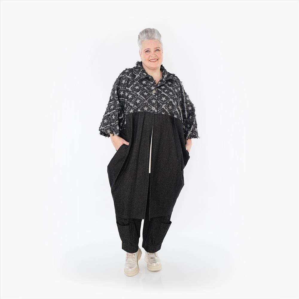 AKH Ganzjahr Mantel in Ballon Form aus feiner Jeans Qualität. Einheitsgröße, tragbar bis EU-Größe 68, wird gern auch von Kundinnen mit kleineren Größen oversized bzw. locker, leger getragen Gesamtlänge ca, 108 cm, 1/2 Oberweite ca. 101 cm, Armlänge: 3/4 Arm. 90% Baumwolle, 10% Polyester. Made in France ! AKH Nr. 7055-DreamStar – statt 159,00 € – jetzt nur 109,00 € (inkl. MwSt.)